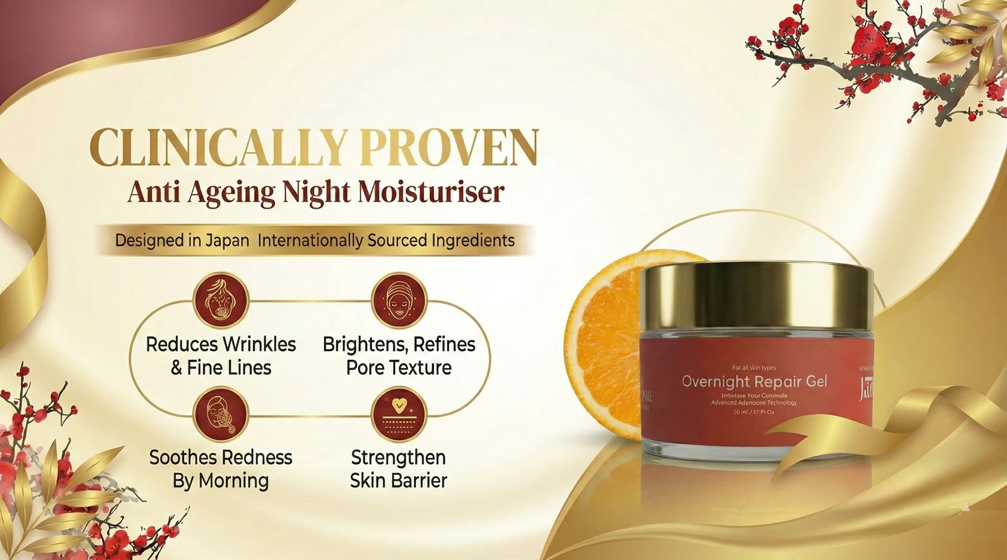 Wake up to calm, firm, “water-skin” radiance with this clinically smart night cream gel for glowing skin. A lightweight overnight moisturizer that hydrates, smooths, and strengthens while you sleep—so your skin wakes up truly restored, not just rested.