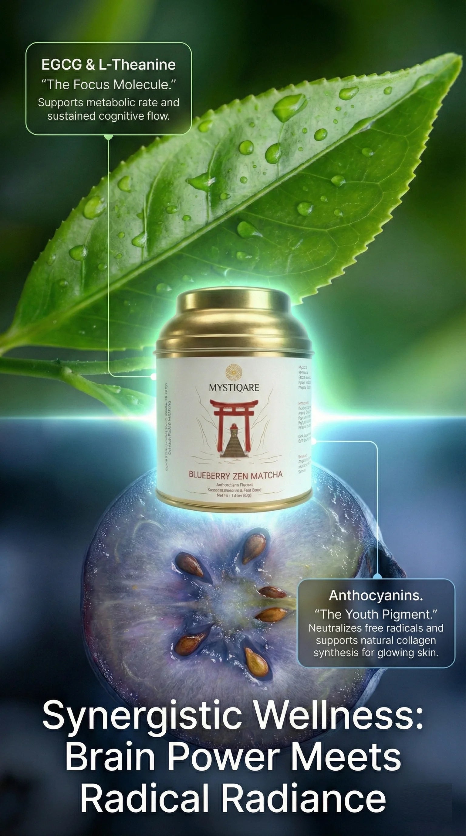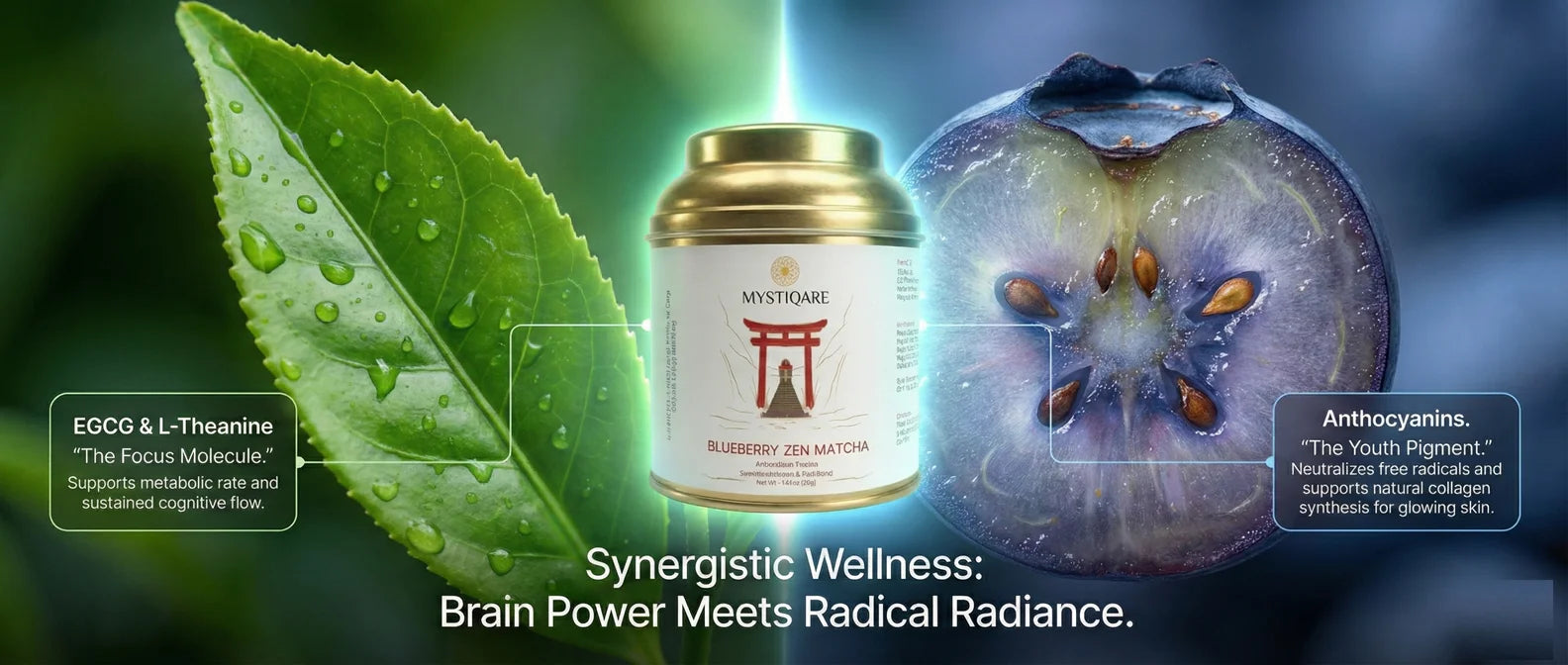 - Dual-Antioxidant Shield: A powerhouse marriage of EGCG (from matcha) and Anthocyanins (from blueberries). It fights oxidative stress, supports collagen production, and gives you that "lit-from-within" skin glow.