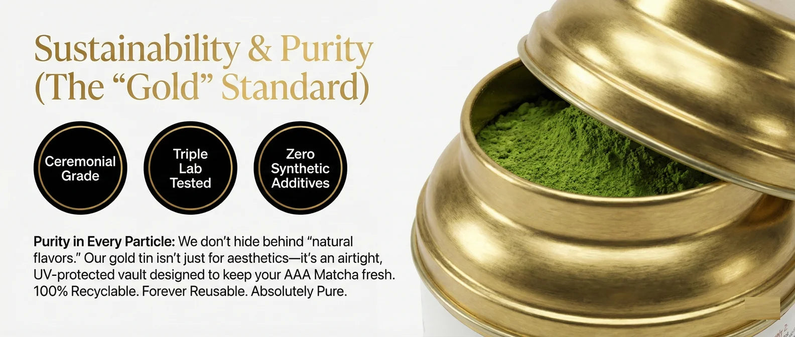 - The Difference: Stone-ground at low temperatures to preserve the vibrant chlorophyll and high L-Theanine content. It provides a creamy, "umami" profile with zero bitterness.
