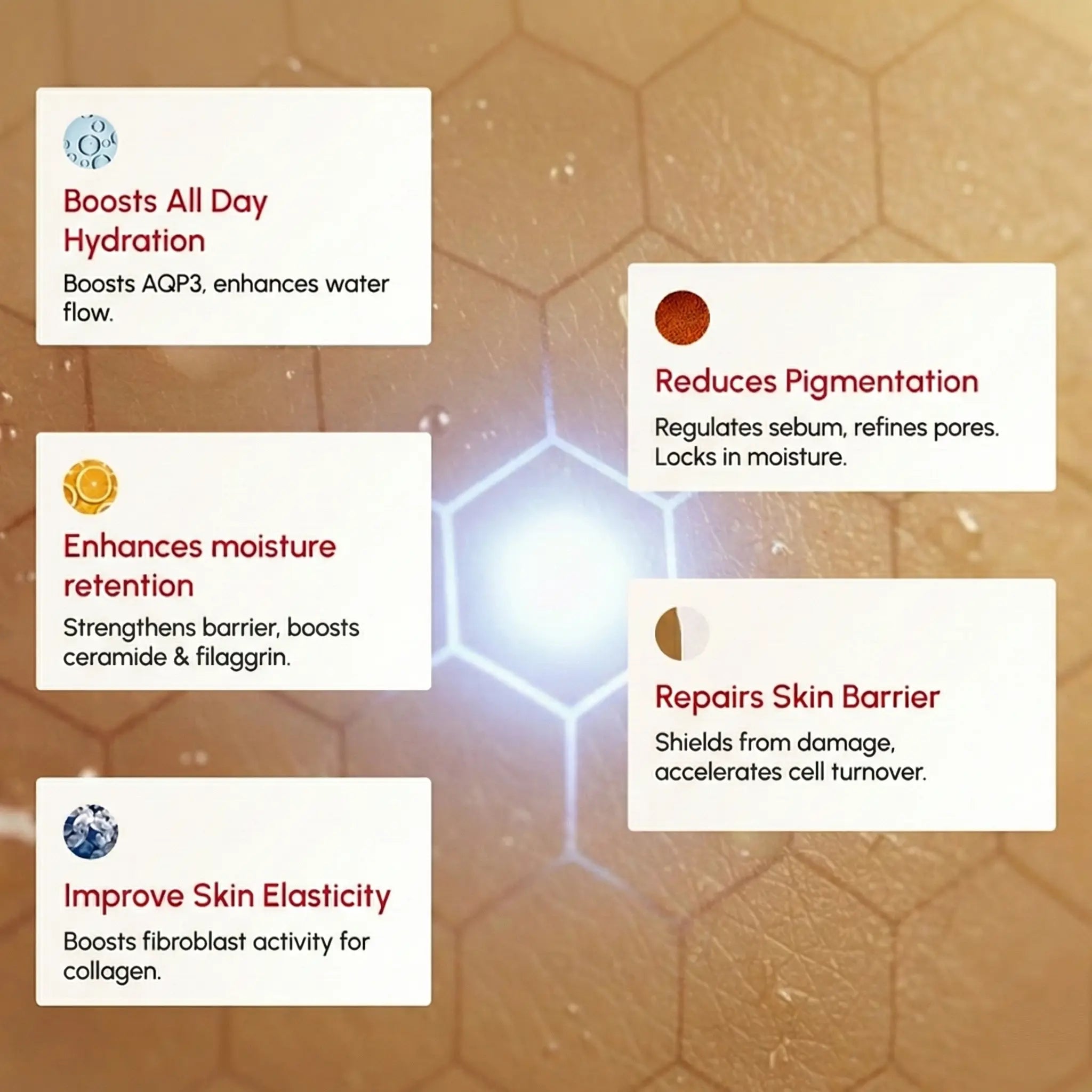 - Hydrolyzed Hyaluronic Acid replenish winter-depleted moisture, improve elasticity, and keep skin comfortable all day—without heaviness or greasiness.